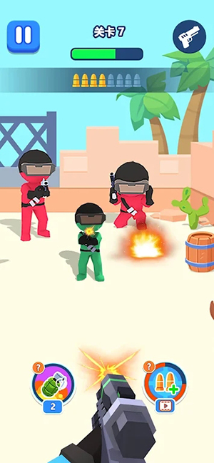 保卫和平消灭敌人Safeguard Peace Erase Enemy是一款第一人称竖版回合制射击游戏,化身正义使者,拿起你的武器消灭所有坏人。游戏采用回合制战斗,在敌人的回合时,玩家需要控制长刀劈敌人发射的子弹,而在玩家回合时,则需要发射子弹击中躲在掩体后的敌人。