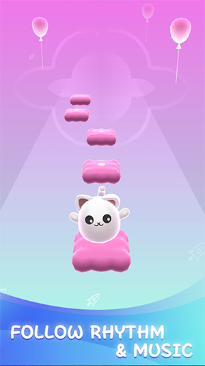 唱歌的猫跳跃Singing Cats Hop是一款令人上瘾的猫咪主题音乐节奏游戏,和可爱的猫咪一同随着音乐节拍不断跳跃。游戏将可爱的喵喵声和朗朗上口的流行音乐进行了完美融合,玩家需要跟随音乐节拍,按住并拖动,使得小猫降落在图块上。