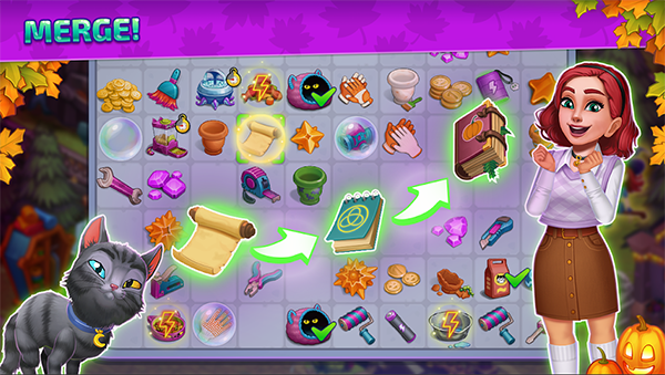 加入鬼屋的冒险中,修复魔女在鬼屋的冒险故事,合并魔法物品,翻新并设计房屋,邂逅不同角色,揭开所有隐藏的秘密