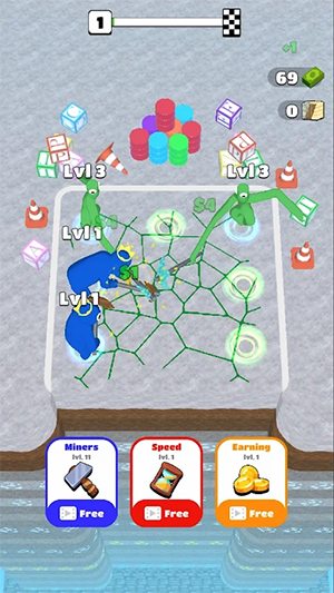 黄金矿工大亨、建筑游戏、闲置采矿、金钱游戏、闲置答题器和彩虹朋友的混合体