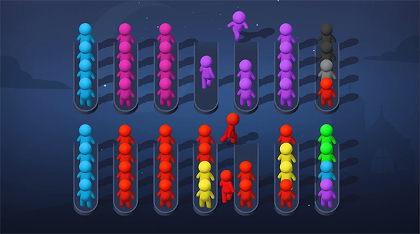 加入游戏,体验这款充满乐趣的火柴人排序游戏,将不同颜色的火柴人排列分类,挑战1600个不同级别的关卡