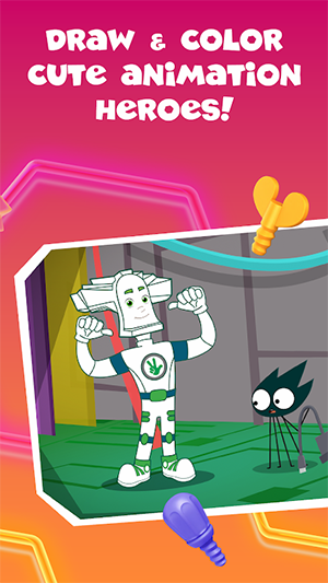 面向儿童的绘画和着色应用程序,具有Fixies动画