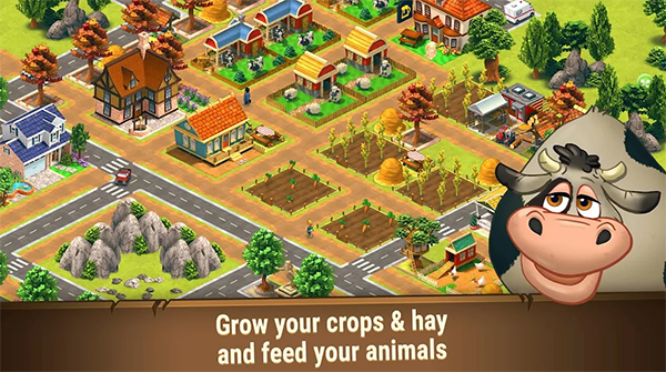 在农场收获干草和农作物,给奶牛挤奶,给绵羊剃毛并出售您的产品以发展您的城镇
