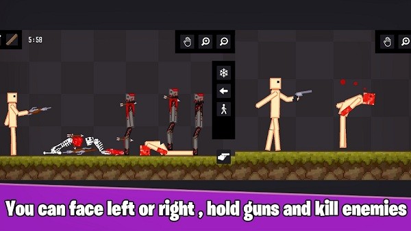 火柴人僵尸游乐场People Stickman Playground - Shoot Ragdoll Zombie是一款沙盒物理模拟游戏,在一个基于物理原理下构建的沙盒世界中,操控火柴人战士,选择不同武器来射击僵尸,观察僵尸在不同武器攻击下的反应。