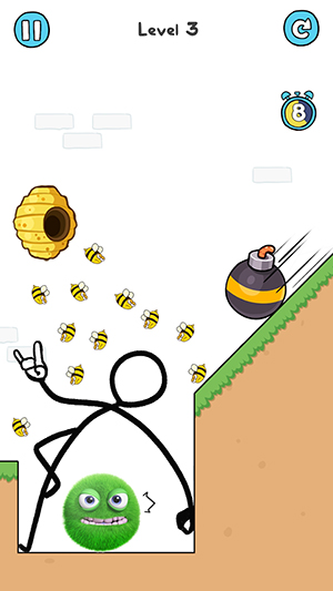 一款极具挑战性的画线益智游戏,帮助班班们免受蜜蜂们的袭击,通过画线来设置屏障,拯救所有的班班怪物