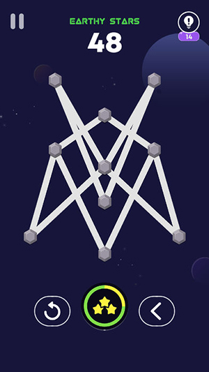 1LINE星星到星星Star To Star是一款以唯美星系为主题的一笔画益智游戏,在游戏中,玩家需要尝试一笔画将所有星星连接在一起,让夜空上的所有星星闪耀。游戏内包含有500多个关卡等你来体验,玩法简单但极具挑战性。