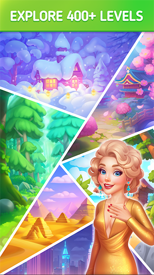 随着游戏的进行,通过 Triple Tile Adventure 环游世界并到达新的地点