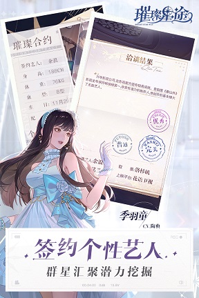 璀璨星途官方是一款娱乐圈经纪人造星手游,在这里成为一名经纪人,养成不同的艺人,你能够签约不同的艺人,帮助他们决定星途的方向,参与到各种活动当中,快来璀璨星途官方中尝试。