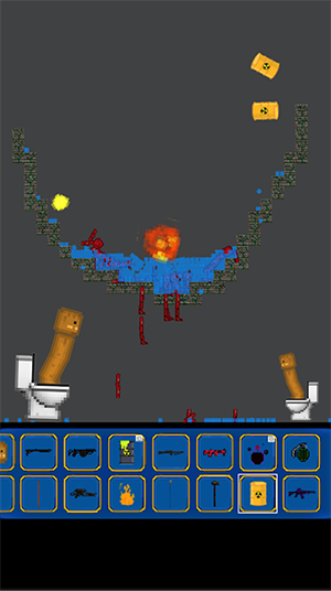 一款玩法自由的布娃娃沙盒模拟游戏,进入一个完全自由的沙盒世界中,选择你的武器,轰炸马桶人怪物