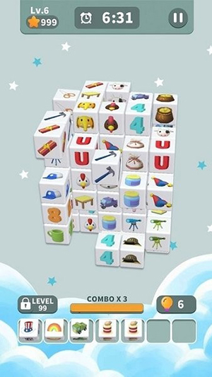 立方体消消乐3D是一款充满挑战的方块益智消除游戏,拥有精美的3D视觉效果。在游戏中,你需要旋转3D立体方块,寻找并配对三块相同的动态砖块来完成消除。各种动物、玩具、食物、学校等不同图案的方块等你来消除。