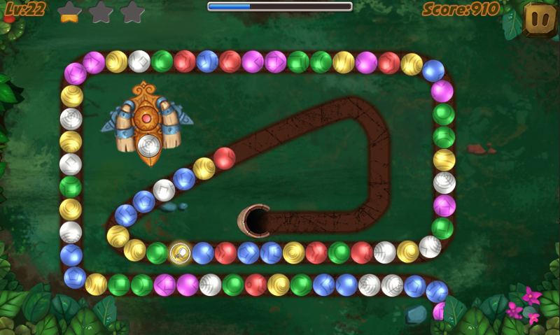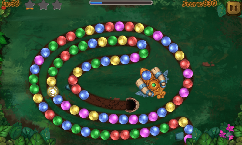 匹配三个或者三个以上的相同颜色的弹珠来消除轨道上的弹珠