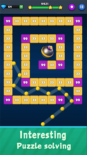 经典有趣的砖块射击消除游戏,具有简单的图形和趣味的玩法,掌握合适的发射技巧,射击来消除砖块