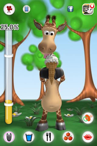 会说话的长颈鹿乔治Talking George the Giraffe是一款虚拟宠物模拟游戏,和会说话的长颈鹿乔治一同玩耍,尝试对着它说话,让它用滑稽的声音重复你说的话。当然,你还可以尝试触摸它的不同部位,看看它会做出怎样的反应。