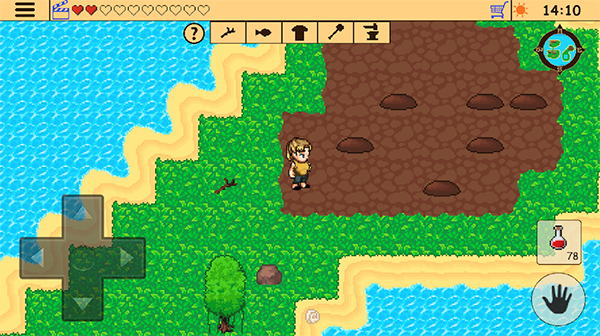 一款免费的冒险类复古RPG游戏,使用2D像素艺术制作,你需要在荒岛上探索、求生,并在失落的岛上找到宝藏