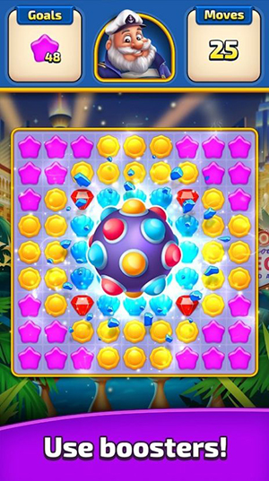 匹配巡航Match Cruise是一款趣味十足的益智三消游戏,罗杰船长欢迎您的加入,进入游戏开始你的三消世界之旅。游戏玩法经典有趣,玩家通过连接3个或更多相同颜色的筹码清除所有关卡障碍,完成关卡挑战来解锁新区域并获得超级礼物。