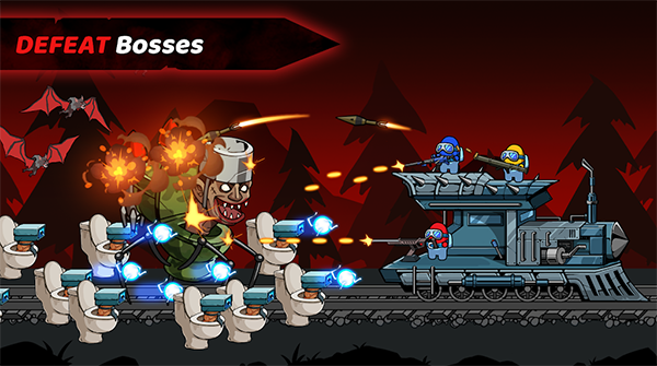 马桶怪物生存Toilet Monster Survival是一款生存策略射击游戏,可怕的马桶人怪物正在追击冒名顶替者,帮助冒名顶替者逃离危险的怪异森林,使用手中的枪来点击射击附近所有的怪物,收集硬币来升级你的武器,考验你的射击技巧、智力和思维能力。