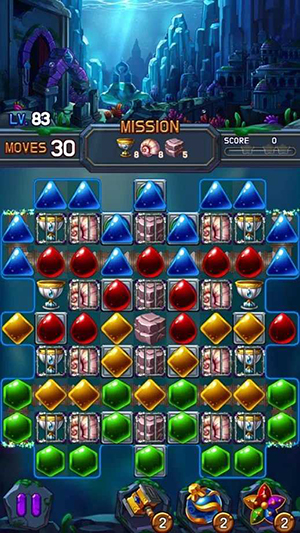 宝石水底世界Jewel Water World是一款宝石主题益智三消游戏,深入神秘的深海水下城市,完成三消难题,寻找隐藏在海底城市中的宝藏。游戏内有超3500多个关卡等你来挑战,没有时间限制,你可以随时随地享受三消带来的乐趣。