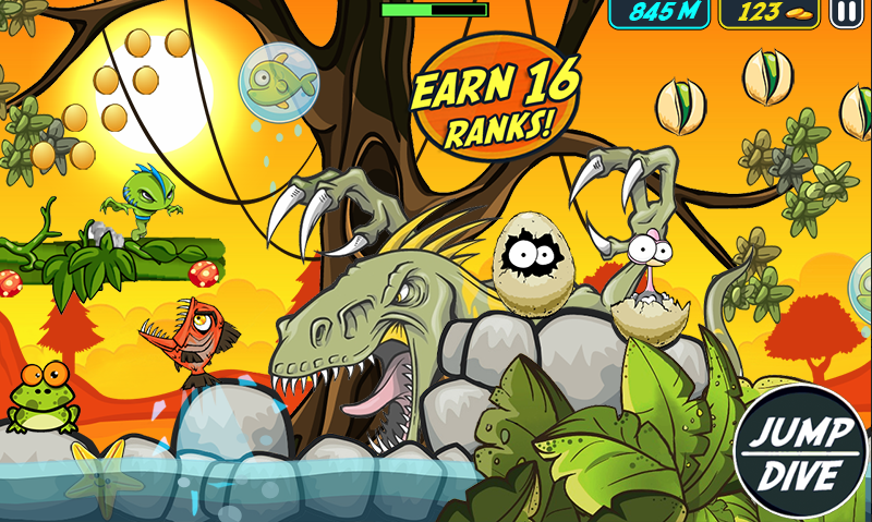 奔跑、跳跃、躲避或击倒动物、完成任务、购买升级并将外星人带出丛林