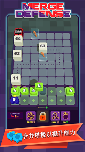 一款结合合并元素的塔防策略游戏,合并相同数字塔楼来升级塔楼,部署更多塔楼来抵御敌人的进攻