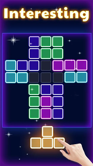 简单有趣的方块填充消除游戏,采用绚丽的荧光块风格设计,挑战消除多个行或列,完成方块填充拼图挑战