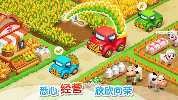 每天和可爱的动物们一起玩耍;种植、收获作物并将它们放置市场出售