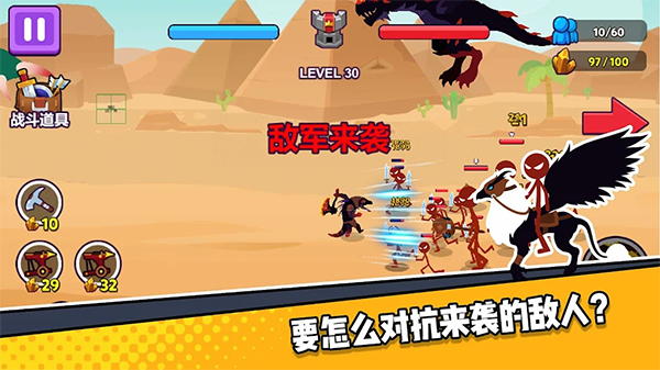 加入火柴人的史诗战斗中,带领不同兵种火柴人军队对抗敌人,攻下敌人的城堡,赢得更多的土地