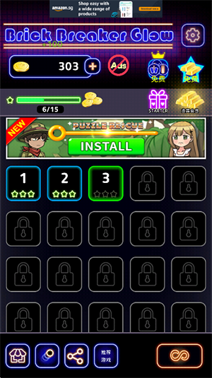 碎砖机发光Brick Breaker Glow是一款砖块射击消除游戏,点击、瞄准,找到最佳的射击角度,发射小球来击碎五颜六色的霓虹灯块。游戏玩法简单轻松,单指即可操作,数以千计的关卡等你来挑战,各种不同的能力的小球和砖块等你发现。