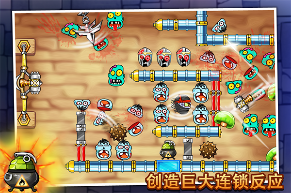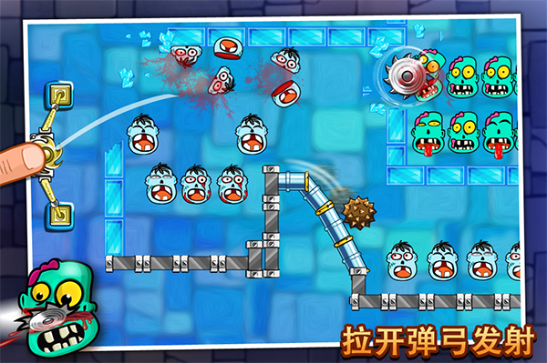发射锯子,消灭并切碎所有僵尸,突破重重障碍,挑战多个不同级别的关卡,击败最终boss,成为僵尸的克星