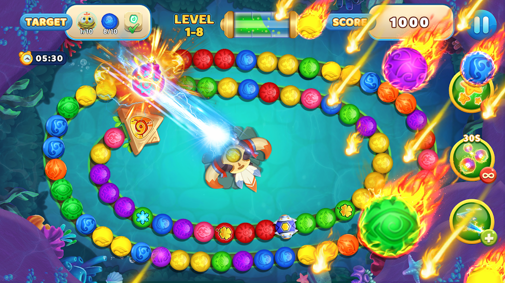 在不同类型的关卡中,乐趣从未停止,清除所有的弹珠,在规定时间内完成挑战