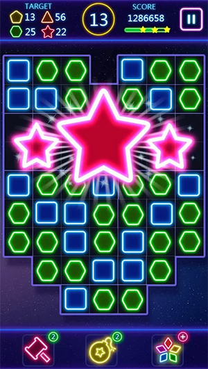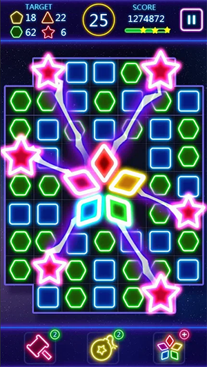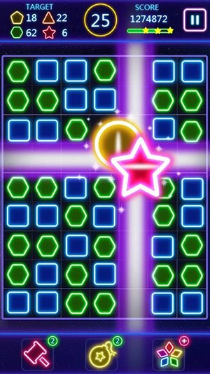 一旦你开始,你会你会大呼过瘾,萤光方块主题的三消益智游戏