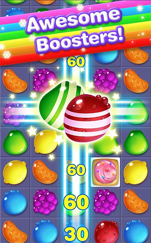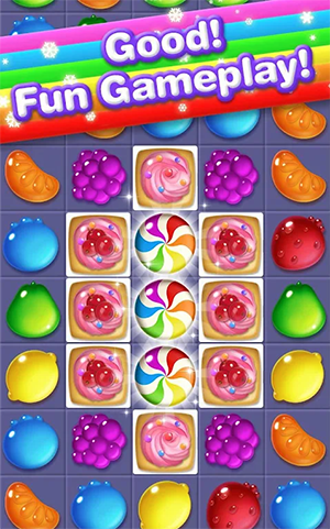 画风绚丽、色彩缤纷的糖果主题三消益智游戏,点击来匹配相同水果,完成消除挑战,体验趣味玩法