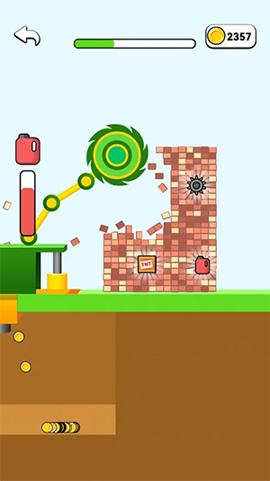 玩法解压、休闲有趣的挖掘模拟游戏,控制一个机械臂来粉碎你面前的墙壁,具有逼真的图形