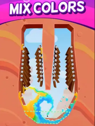 通过巧妙地利用这些元素,玩家需要将不同颜色的颜料分别引导至对应的坑洞中。