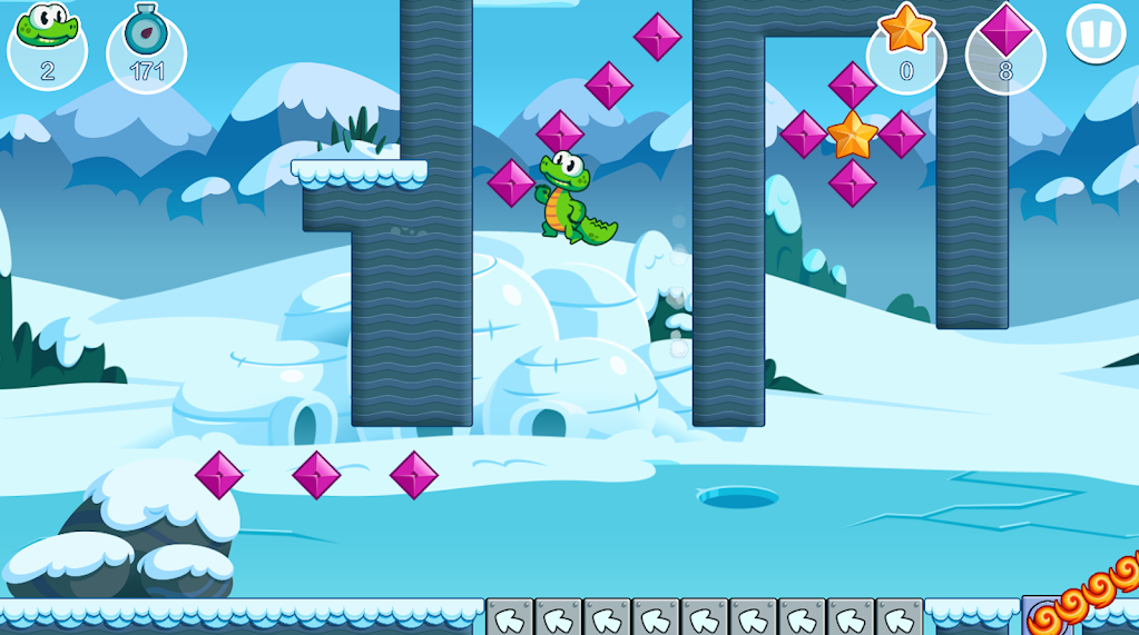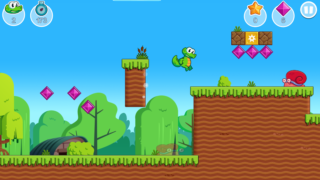 鳄鱼世界跑酷Crocs World Run是一款经典的平台动作冒险游戏,和可爱的小鳄鱼一同踏上冒险旅程,完成4个不同的世界冒险。游戏中包含有50个不同级别的关卡等待玩家参与,击败敌人,收集足够多的星星来进入全新世界。