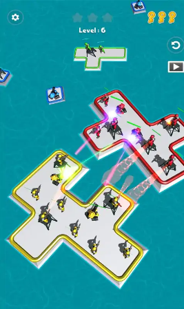 顶级战争3D是一款竖屏策略闯关游戏,如果您是海战游戏的粉丝,那么是时候加入这个有趣的动作战争游戏并参与无尽的战斗了。在这里,您可以通过与其他漂浮在海洋中的木筏合并来加强您的木筏并扩大您的地形。 通过与其他木筏联合组建一支更大的军队并击败对手来建立您的团队。
