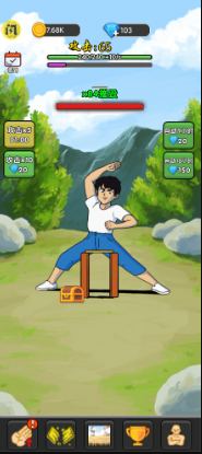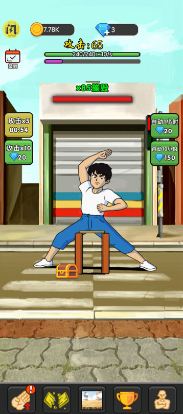 放置你的手机,你的角色将会通过不断劈砖来磨练自己。