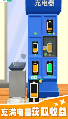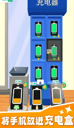 在游戏中,玩家需要经营一个手机充电站。通过点击屏幕,将顾客的手机拖放到充电器盒中,即可开始充电。