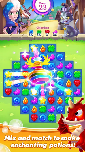 魔法融合Magic MixUp是一款休闲益智三消游戏,进入童话般的魔法王国,携手Luna一同开启魔幻的三消冒险旅程。收集宠物、配制药水、寻找贴纸,穿越不同世界,完成无数任务,破解三消谜题,击败传说中的巨龙,拯救魔法王国。
