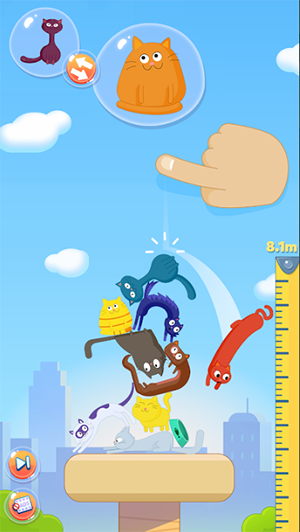 旋转姿势、找好位置,放下猫咪,尽可能堆出最高的猫咪塔,力夺高分