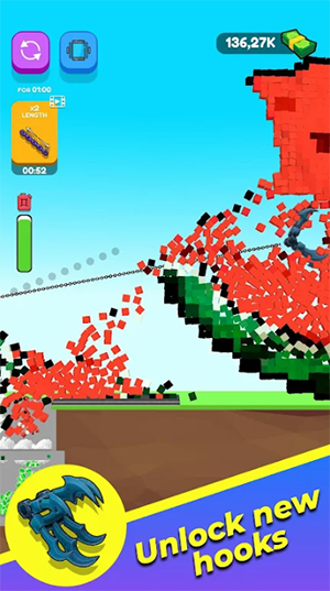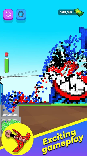 玩法解压、轻松有趣的像素方块粉碎模拟游戏,发射抓钩来粉碎像素雕像,享受解压的游戏过程