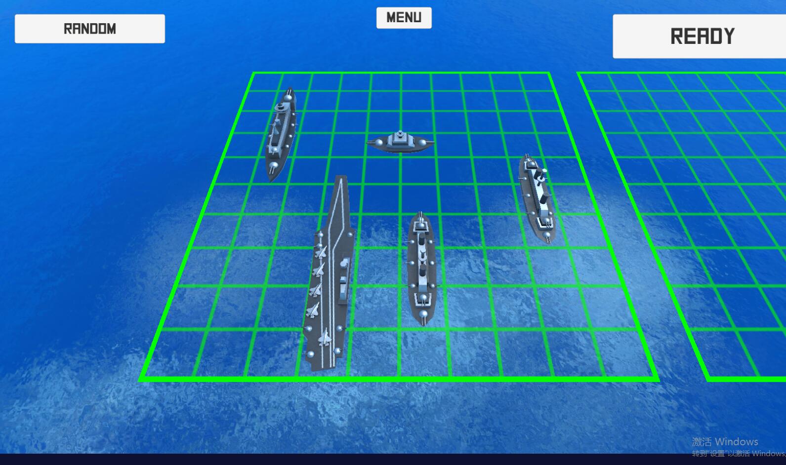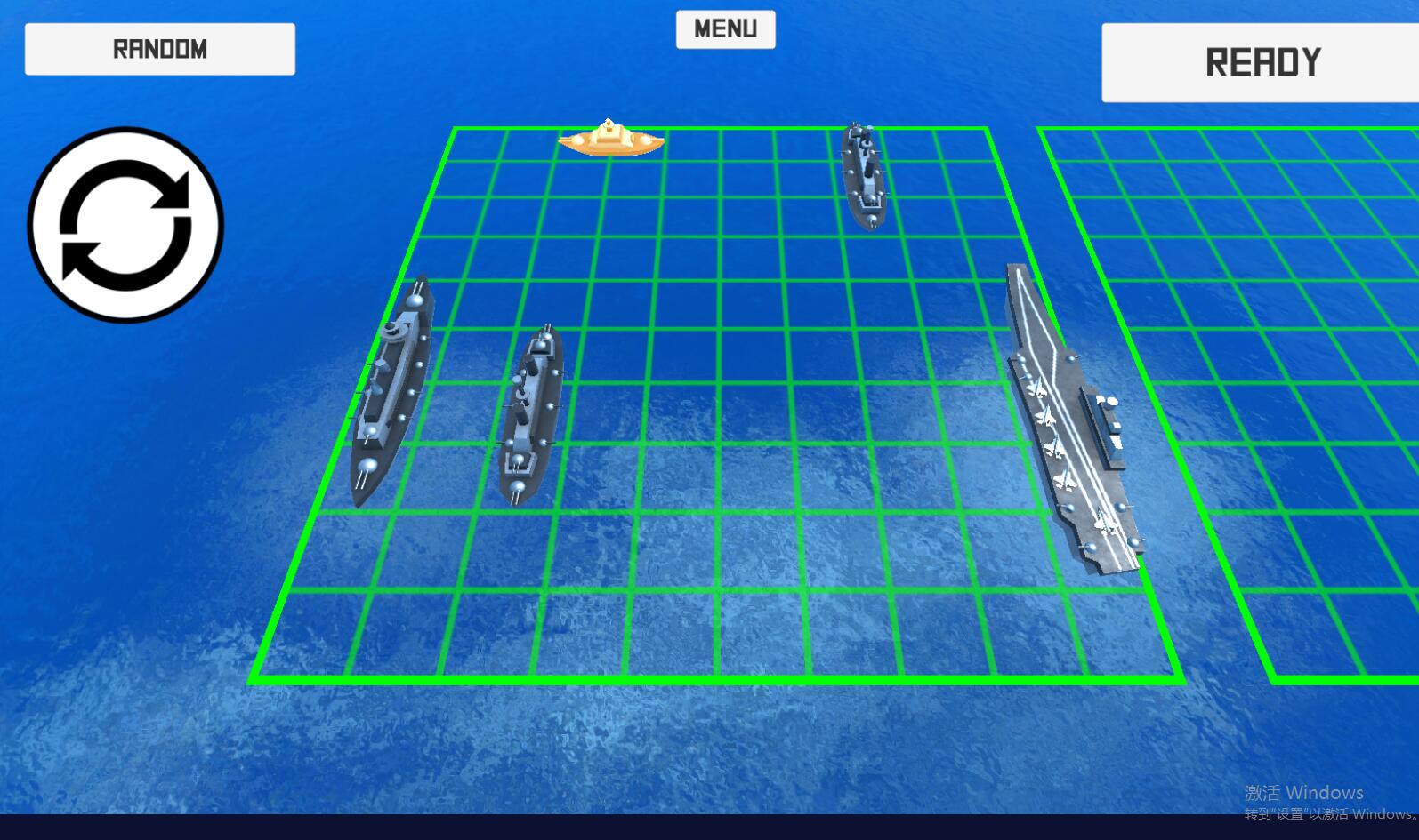 要玩游戏,首先要将船只放在网格上,旋转每艘船使用按钮随机放置