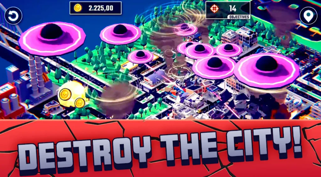 世界末日是一款以灾难为主题的手机游戏,玩家需要扮演一个灾难管理者,通过管理各种灾难,从自然灾害到外星入侵,来赚取金币并解锁新的灾难。在游戏中,玩家可以使用金币升级自己的能力,并在世界末日中生存下来。