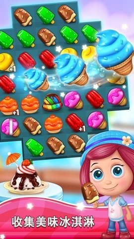 进入满是冰淇淋的世界,帮助Melissa完成三消谜题,消除Savoreaux市民的悲伤