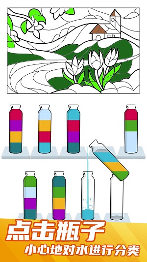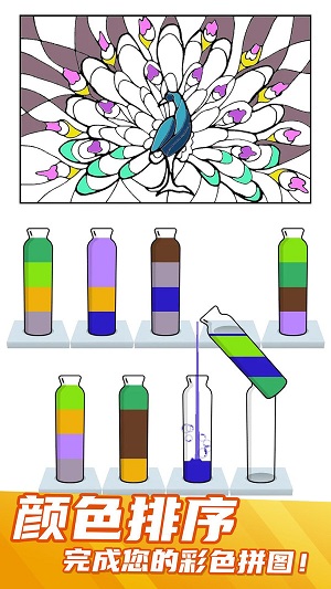 通过不断调整液体,分别排列顺序,将所有颜色全都分类,你能够在这里体验趣味的益智玩法。