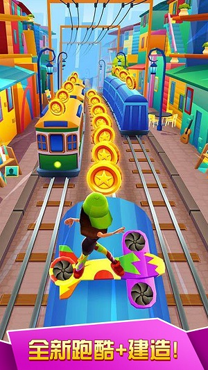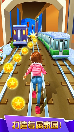 充满障碍的地铁上快速奔跑,避开各种障碍,收集金币完成挑战。