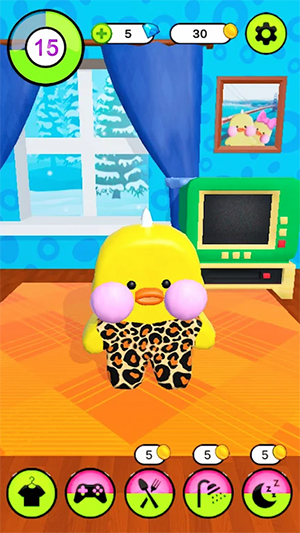 和你的鸭子玩耍,喂它,在淋浴时清洗它,然后把它放在床上