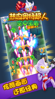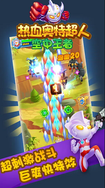 奥特曼英雄大战空中王者游戏是一款弹幕射击游戏,奥特曼英雄与咸蛋超人一起施展神奇的力量,勇往直前突破难关。一场视觉盛宴就在眼前,不要停止攻击快点把小怪物们都赶跑吧!刺激的弹幕对决、酷炫强力的技能、实用无敌的道具,还等什么,快来和奥特英雄咸蛋一起保卫地球,体验刺激爽快的弹幕射击!