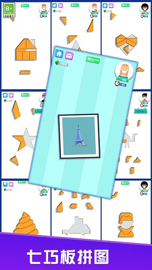 益智七巧板是一款休闲益智娱乐类游戏,你能够在这个益智的游戏中不断尝试,通过不断拼图,完成你的挑战,更多有趣的关卡可以尝试,你能够加入到其中不断尝试,赢得更多的奖励,快来益智七巧板中体验。