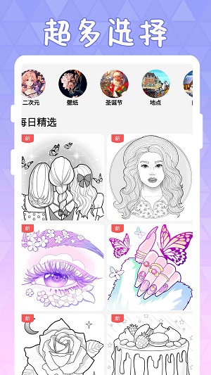 通过解锁不同的色彩玩法,体验不同的填色快乐。