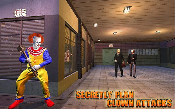 一款逼真的小丑模拟游戏,扮演成为小丑,利用恶作剧来吓唬人,各种小丑服装和面具可供选择